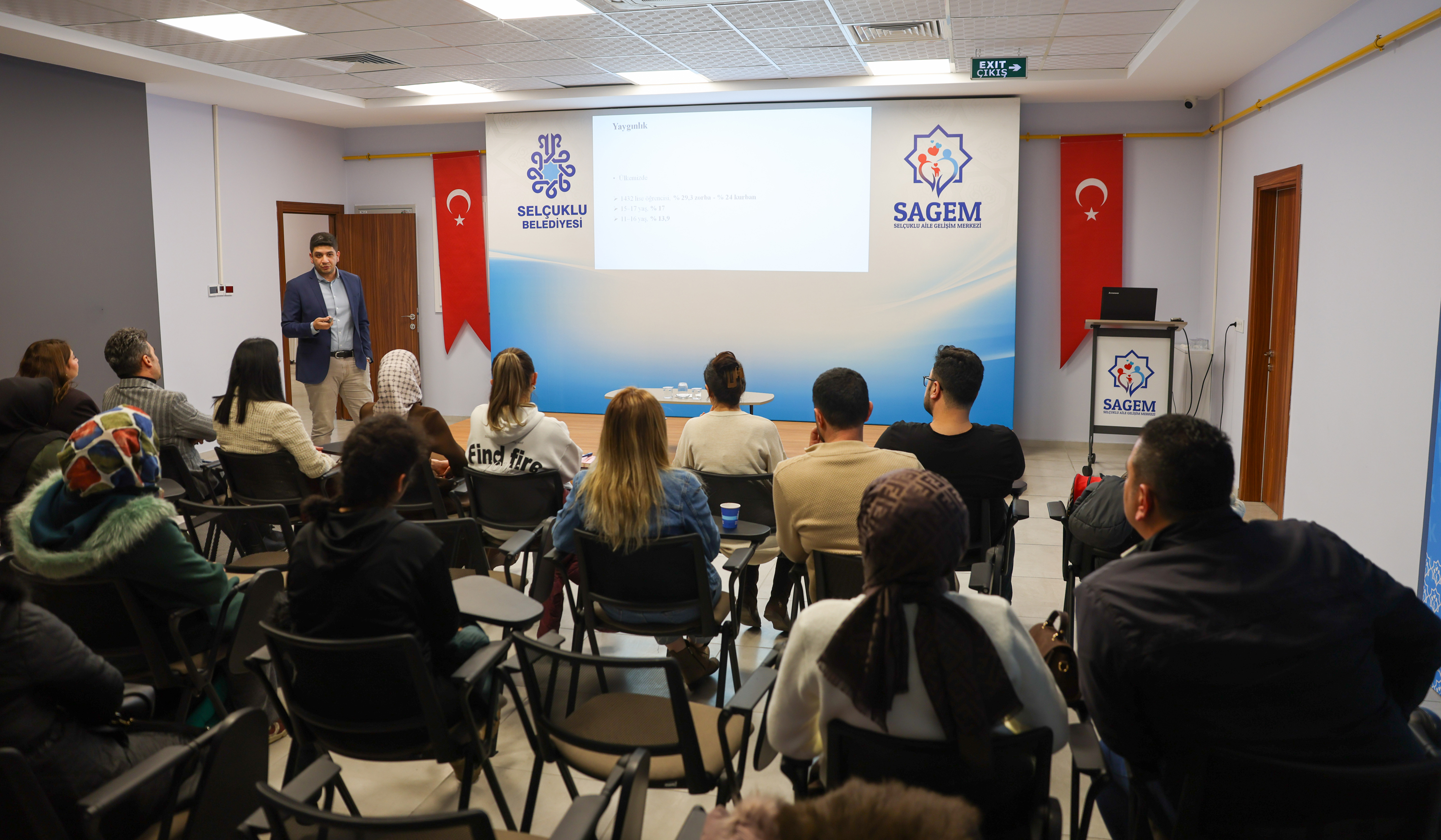 Selçuklu Belediyesi tarafından ilçeye kazandırılan ve aile kurumunun yapısını güçlendirmeyi hedefleyen SAGEM, ailelerin gelişimini desteklemeye yönelik eğitim programları ve seminerlerine devam ediyor. Bu kapsamda çocuk ve ergenlerin toplumsal, duygusal ve ruhsal gelişimini olumsuz etkileyen “Akran Zorbalığı ile Mücadele” bahisli bir bilgilendirme semineri düzenlendi.